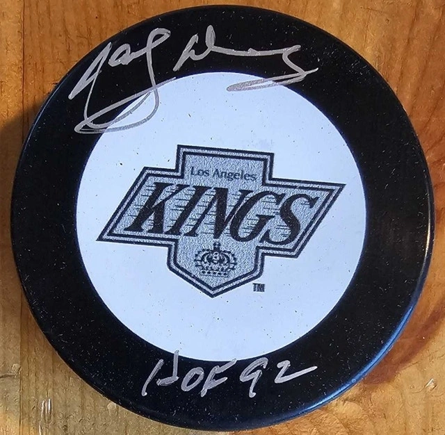 Experience a piece of hockey history with this autographed puck by the legendary Marcel Dionne. Perfect for fans of the Los Angeles Kings and collectors of sports memorabilia, this puck comes with a certificate of authenticity, ensuring that it's an original, genuine item. Signed by Dionne himself, it's a remarkable addition to any collection. Crafted for enthusiasts of the sport, this puck embodies the spirit of hockey and the legacy of one of its greats. Whether displayed in your home, office, or given as a gift to a dedicated hockey fan, it's a tangible piece of sports heritage that celebrates the career of an NHL icon.