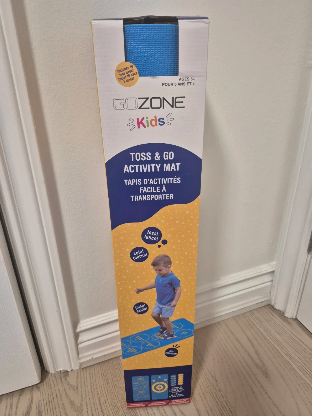 This activity mat has two sides for different games and includes 10 toss bags. It's designed for indoor and outdoor use for kids aged 5 and up. Great for active play!