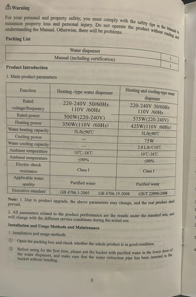 I'm selling a brand new water dispenser that offers both heating and cooling functions, perfect for any home or office! It accommodates 220-240V at 50/60Hz, with a heating power of 500W and a cooling power of 75W. The heating capacity is 5L/h at ≥90°C, while the cooling capacity is 2.0 L/h at ≤10°C. This dispenser is designed for purified water. Additional specifications: Voltage/Frequency: 220-240V 50/60Hz, Rated Power: 500W (220-240V), Heating Power: 350W (110V /60Hz), Cooling Power: 75W, Ambient Temperature: 10°C-38°C. It's brand new and still in the box. If you're reading this, it's still available!