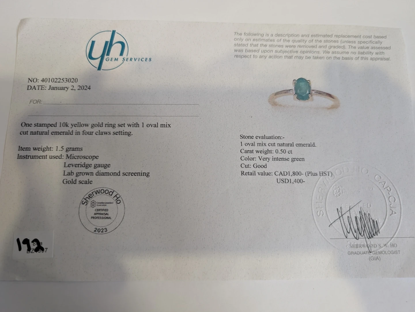 Brand new 10kt yellow gold natural emerald gemstone ring for sale. One oval cut natural emerald genuine gem stone 0.50ct carats. Ring size 7, made in Canada, May birthstone. Retail value $1800, selling for $750 FIRM. Comes with appraisal.