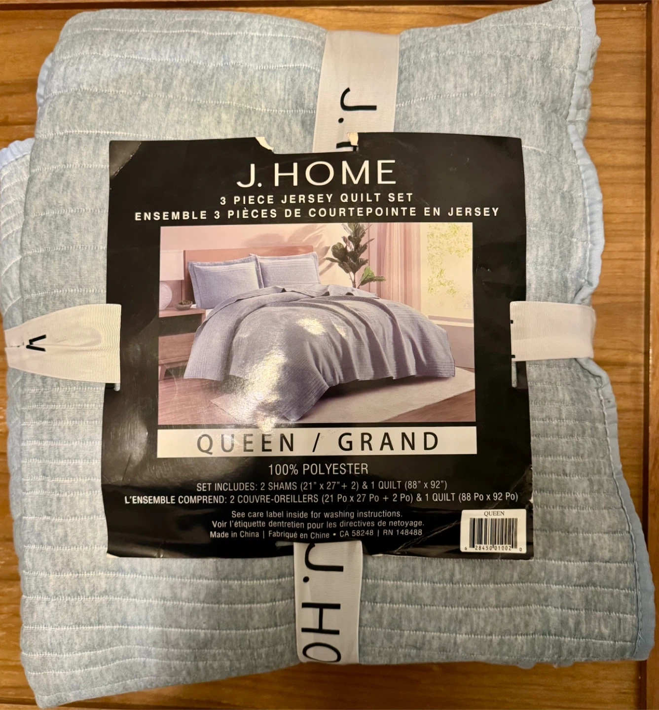 Selling a J. Home 3-piece jersey quilt set in queen size! Brand new never opened.