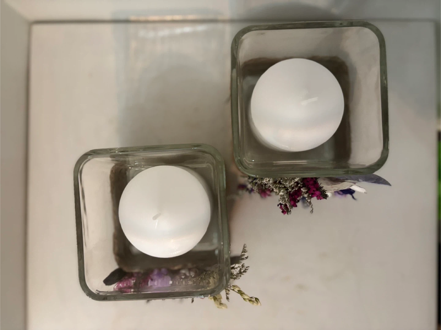 Set of 2 Decorative Glass Candle Holders with Dried Flowers