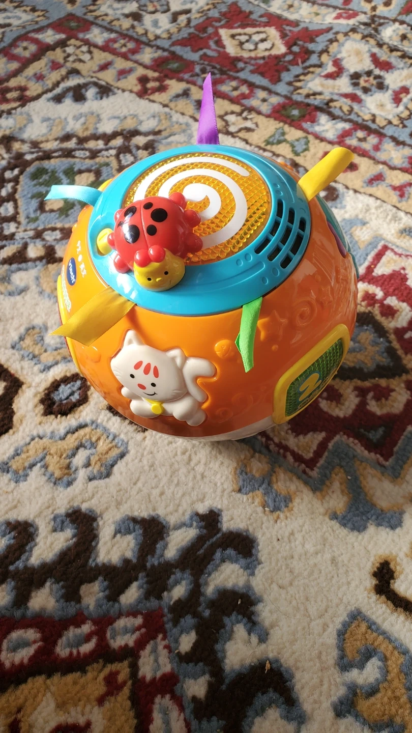 This VTech musical ball is designed for babies and toddlers. It features colourful buttons with animals and numbers. It's perfect for little hands to grasp and explore! It's a great way to introduce cause and effect.