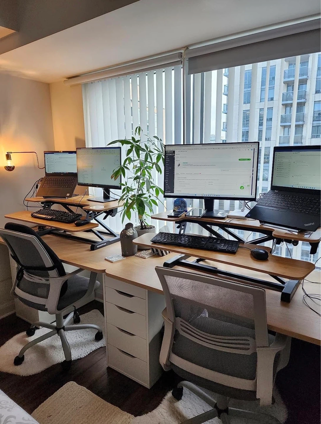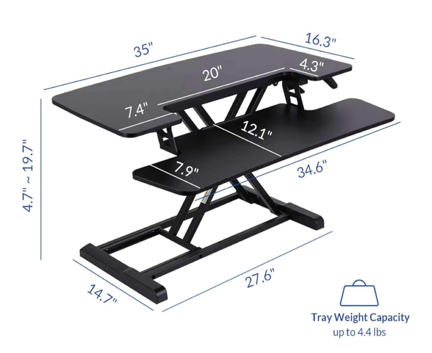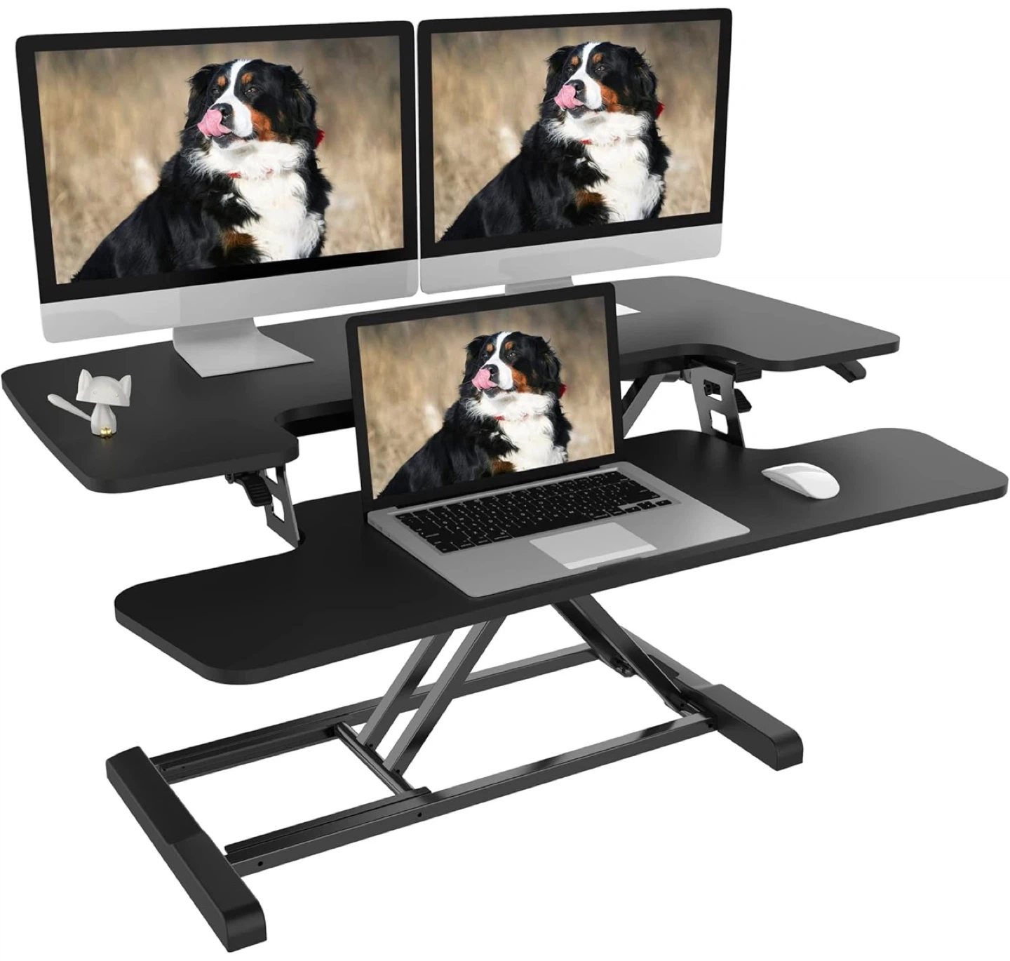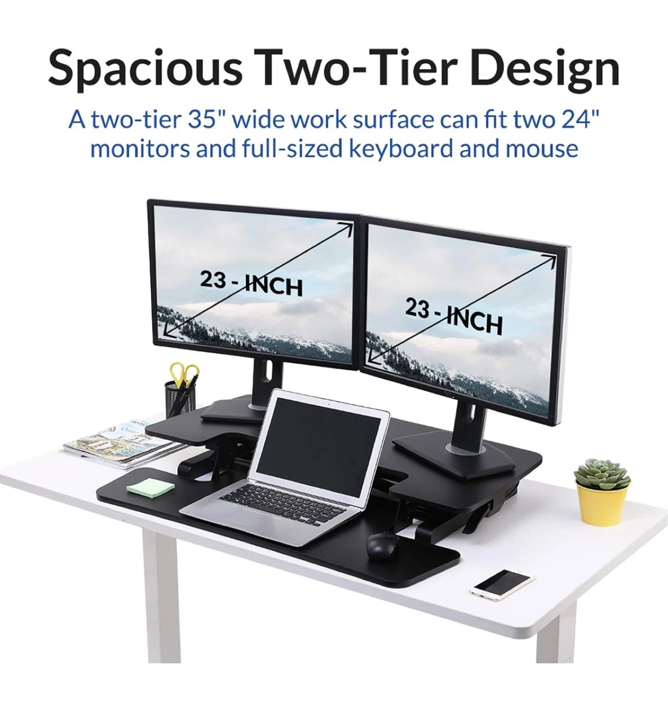 FLEXISPOT Standing Desk Converter - 35 Inch Height Adjustable Standing Desk Riser, Black Home Sit Stand Workstation Office Desk for Dual Monitors and Laptop