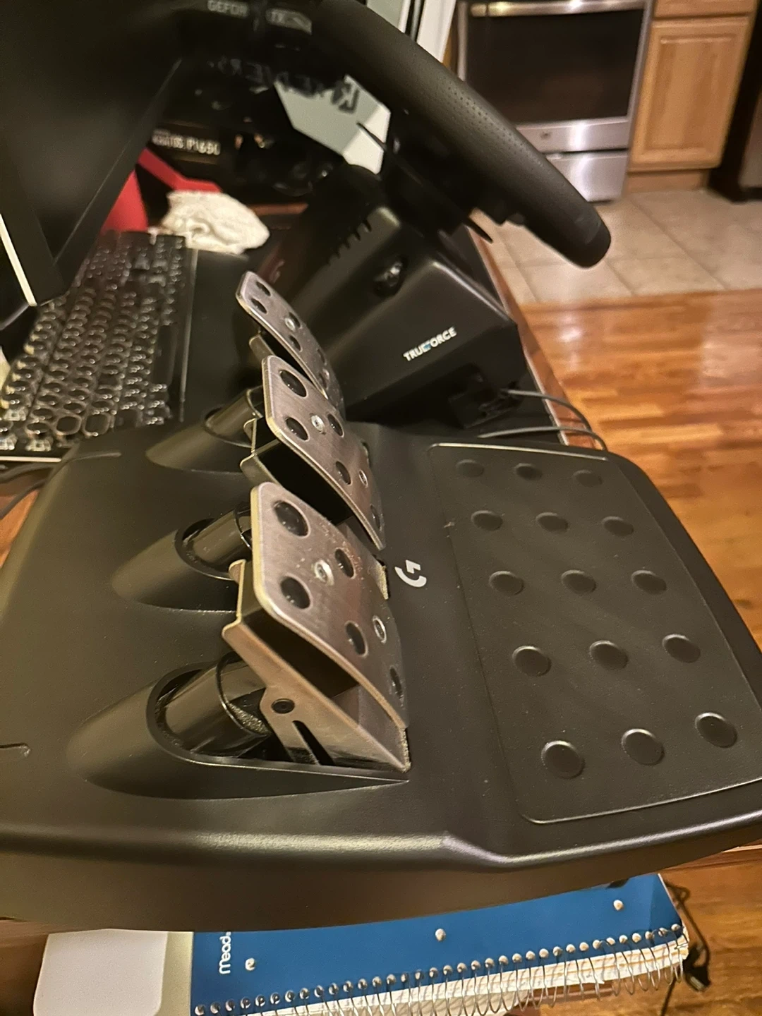 Selling a Logitech G923 racing wheel and pedal set! It's in great condition and ready for a new gamer. Features Trueforce feedback for realistic racing simulation.