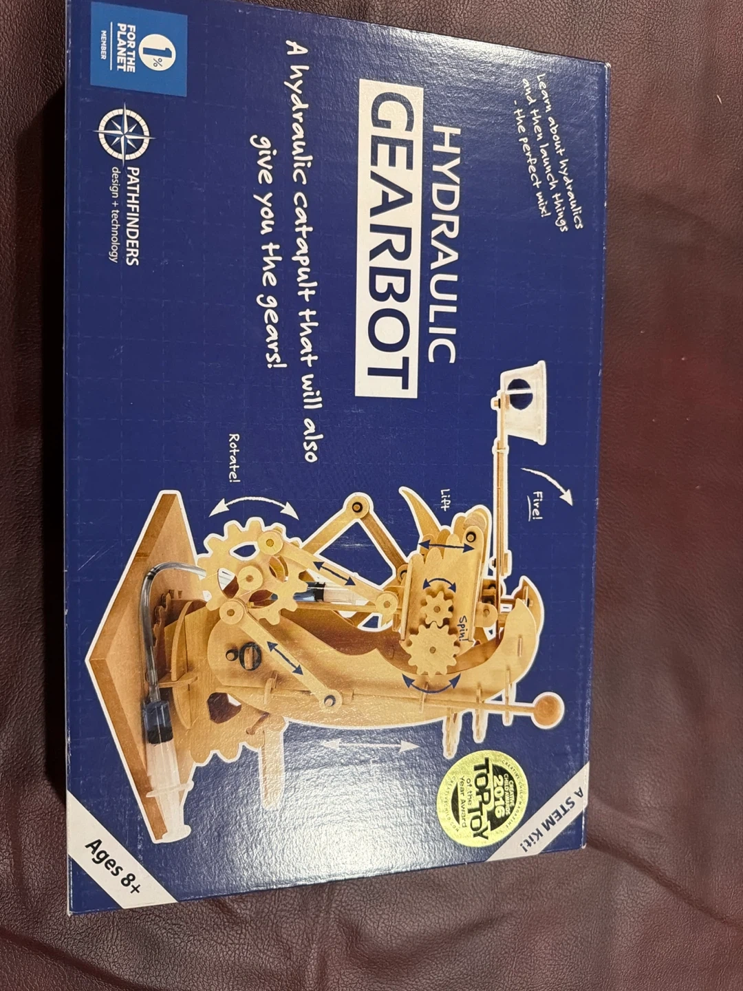 Get ready to build and learn with this Hydraulic Gearbot STEM kit! It's designed for ages 8 and up, and it includes all the parts and glue you'll need to assemble a working hydraulic catapult. Made of sturdy die-cut plywood with an MDF base, it's a great way to explore STEM concepts in a hands-on way