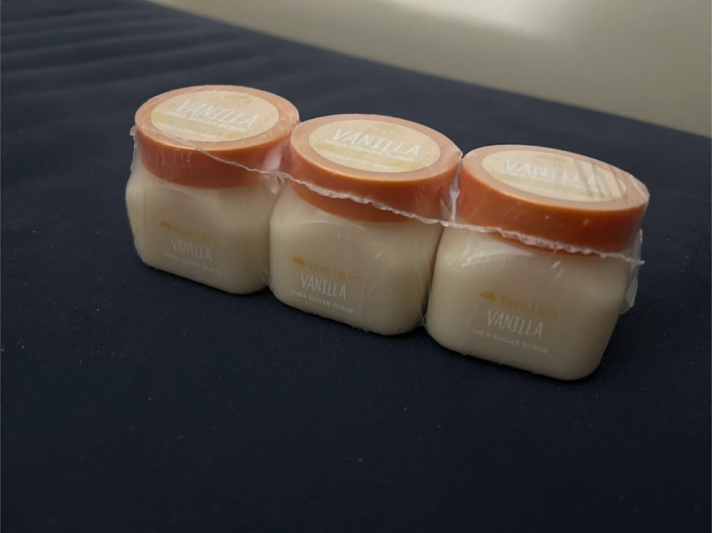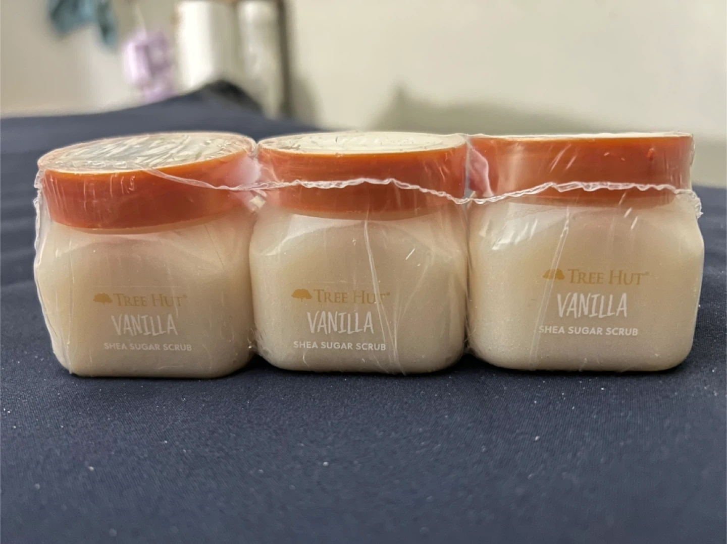 3 pack Brand new, unopened: Tree Hut Vanilla Shea Sugar Scrub in a convenient 3-pack. Made with shea butter, sugar, and vanilla extract. Helps soothe and renew skin.