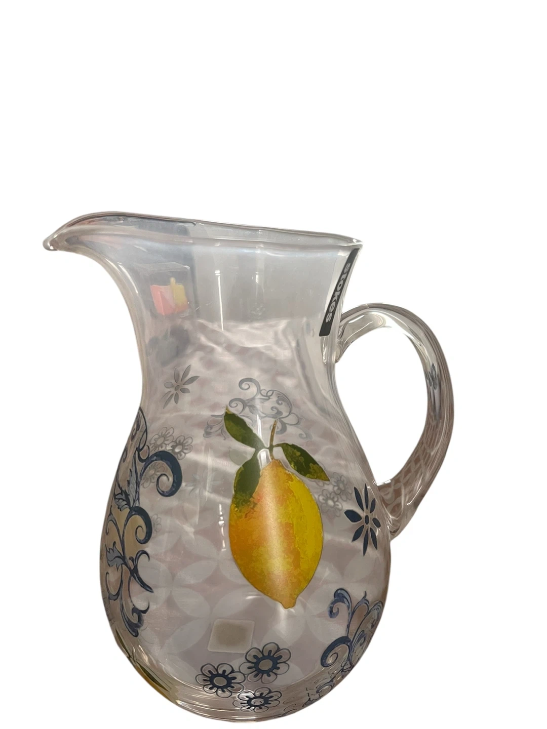 Glass Pitcher with Floral and Lemon Design