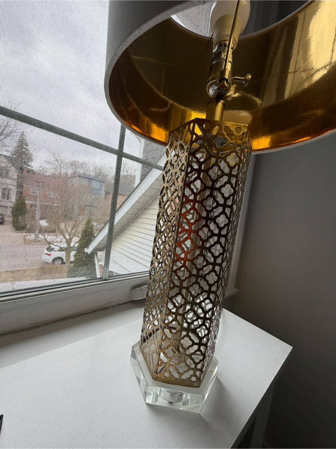 table lamp, gold lamp, lattice lamp, metal lamp, crystal base lamp, tall table lamp, decorative lamp, glam lamp, modern lamp, bedroom lamp, living room lamp, accent lamp, designer style lamp, home decor lighting