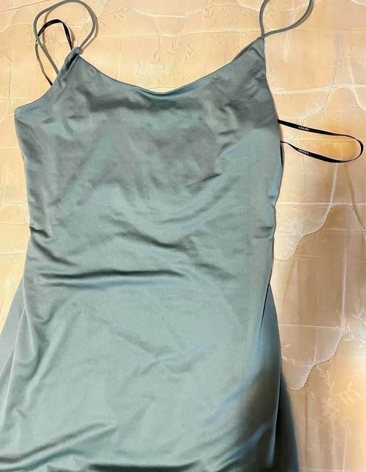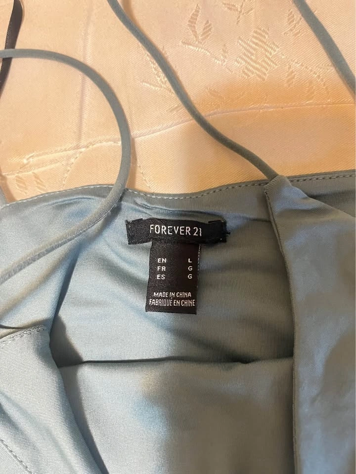Beautiful long dress from Forever 21, satin finish in a light blue / baby blue color. Size L, flowy and flattering fit, worn once!! In great condition, no rips or damage. Perfect for special occasions, parties, dinners, weddings, or formal events.