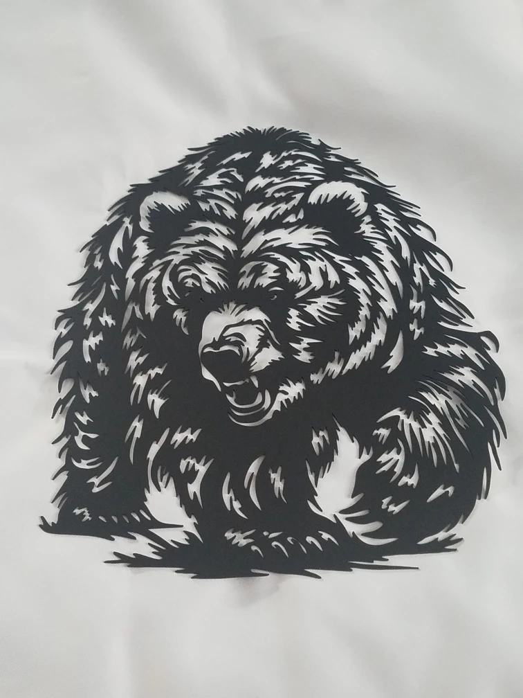 Black metal grizzly bear wall art. Intricate detailing on the bear's fur and face. Suitable for indoor or outdoor display. brand new 2 available $40 each