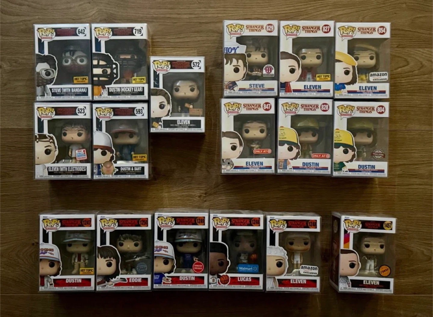Selling exclusive Funko Pop! figures from Stranger Things. Includes various characters like Eleven, Dustin, Steve, and Eddie. All figures are in their original boxes. Great for any fan of the show! $50 each.