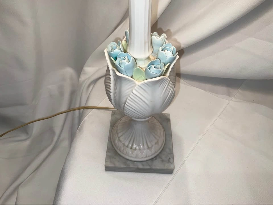 Vintage Porcelain Table Lamp - Blue Flowers, Marble Base