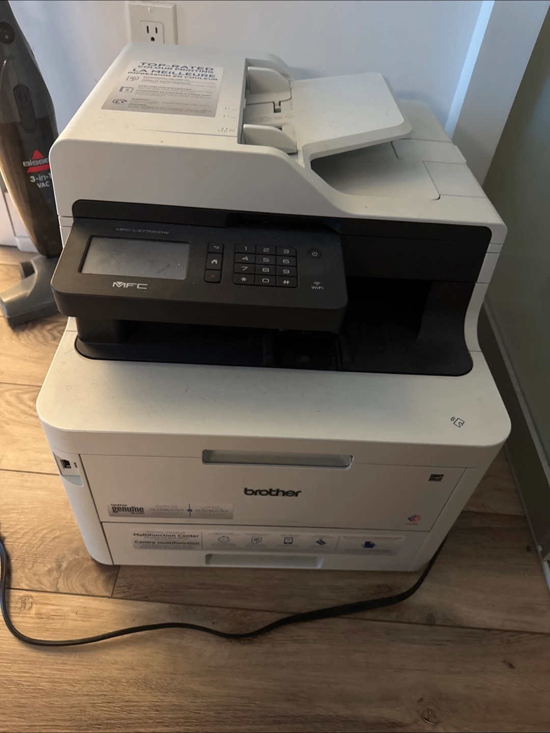 Selling a Brother MFC-L3770CDW multifunction colour printer. It has a control panel and WiFi connectivity. Great for home or small office use!