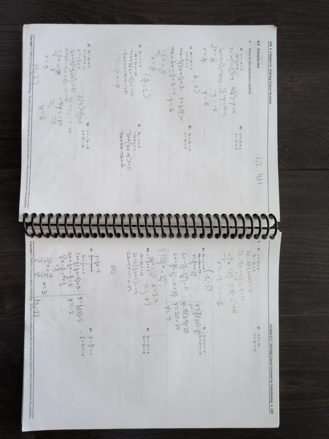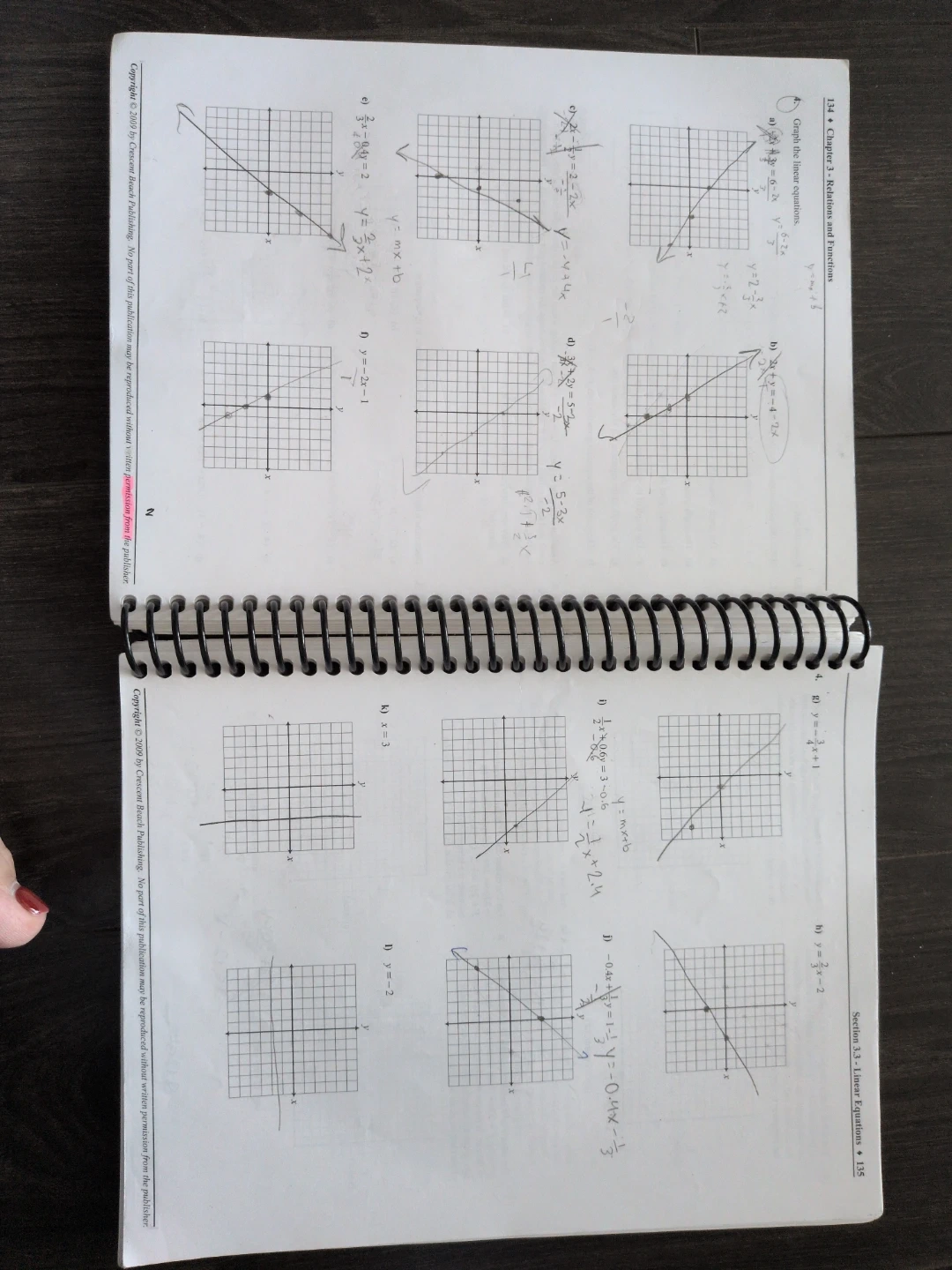 This workbook covers topics like polynomials, linear equations, and functions. It's filled with exercises and some completed solutions. Useful for high school algebra review.