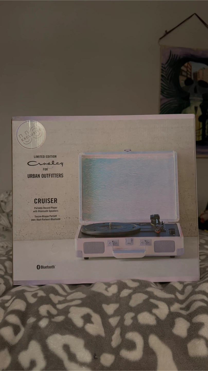 Selling a Crosley Cruiser portable record player in a limited edition design from Urban Outfitters! It's in great shape and ready to play your favourite vinyls. This record player has Bluetooth speakers built in, so you can easily connect your phone or other devices to play music wirelessly. Comes with the original box
