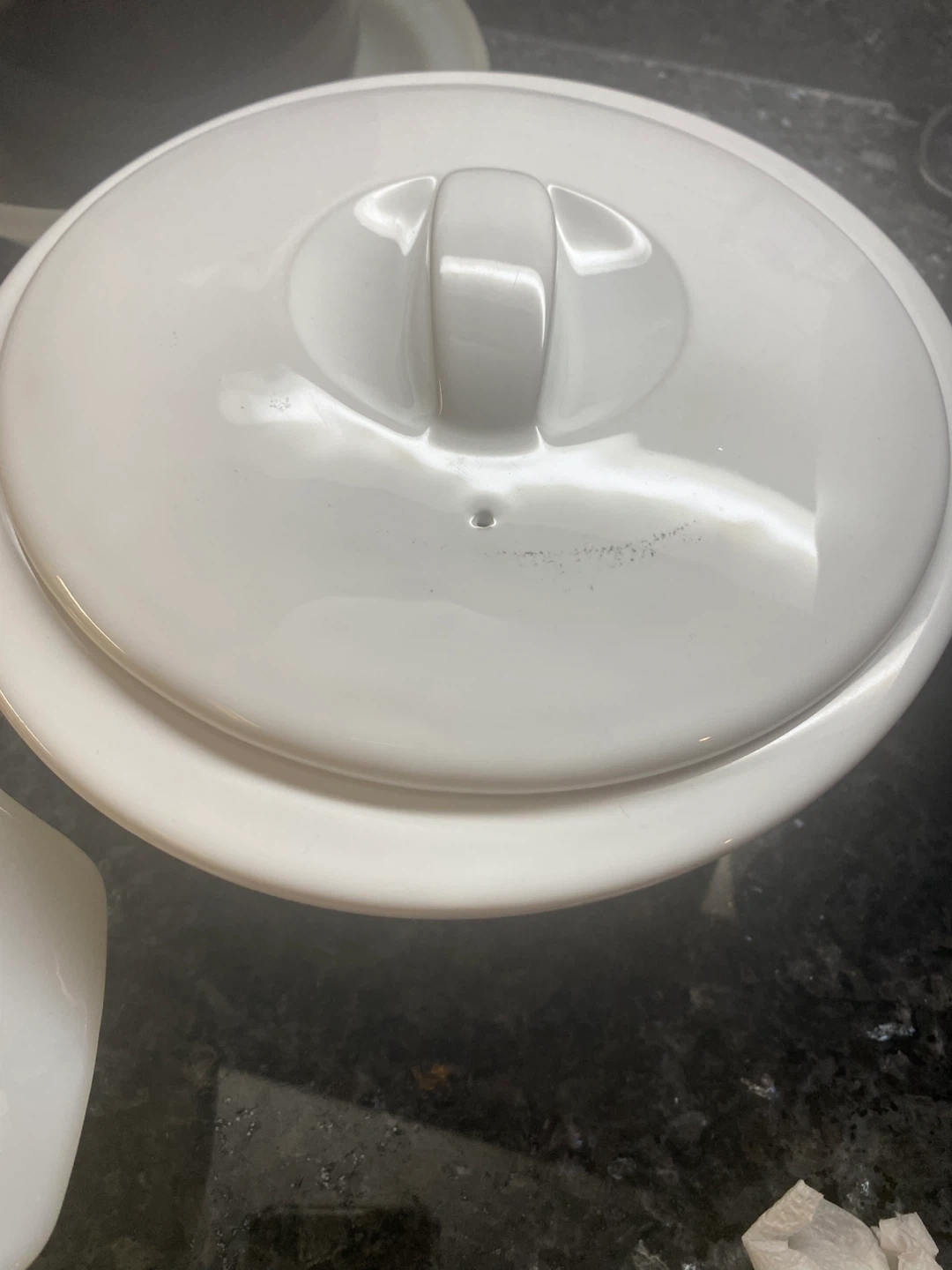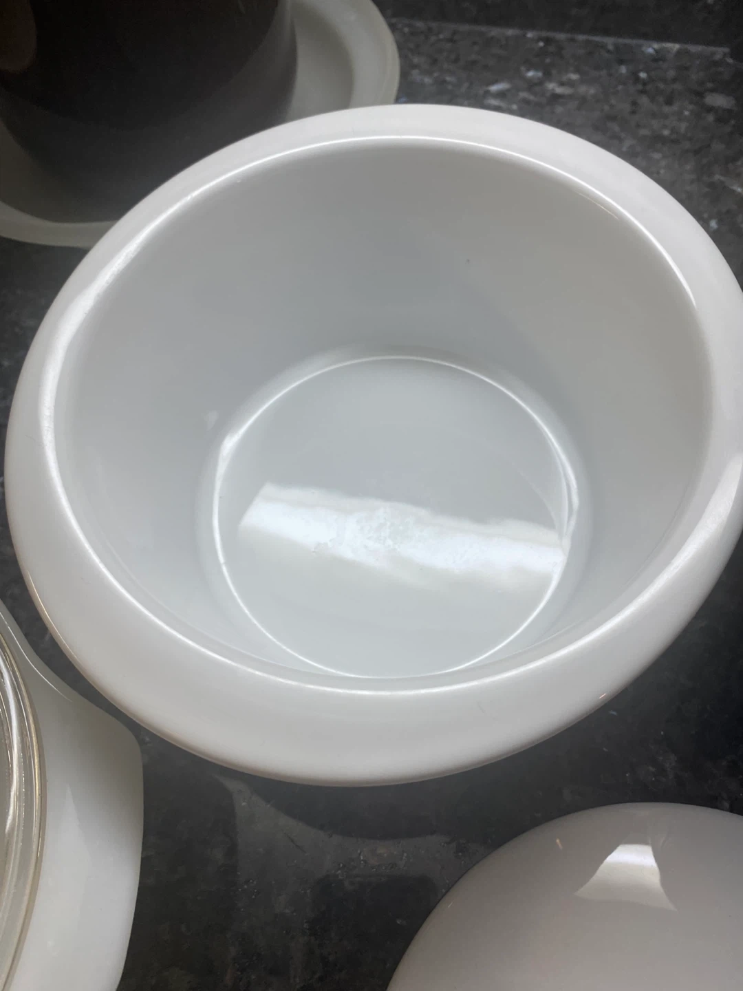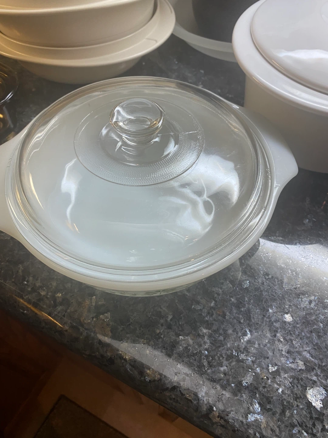 Selling a lovely vintage Pyrex casserole dish! It's white with a green floral pattern and comes with a clear glass lid. A charming addition to any kitchen!