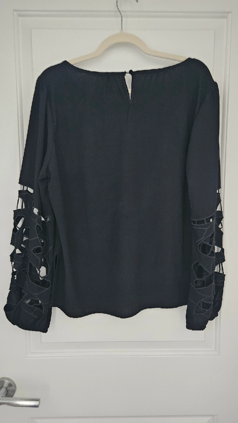 Selling a gently used Joie blouse in black! It's a size medium and features a unique sleeve design. Perfect for adding a touch of style to your wardrobe! Perfect for both work and casual days.