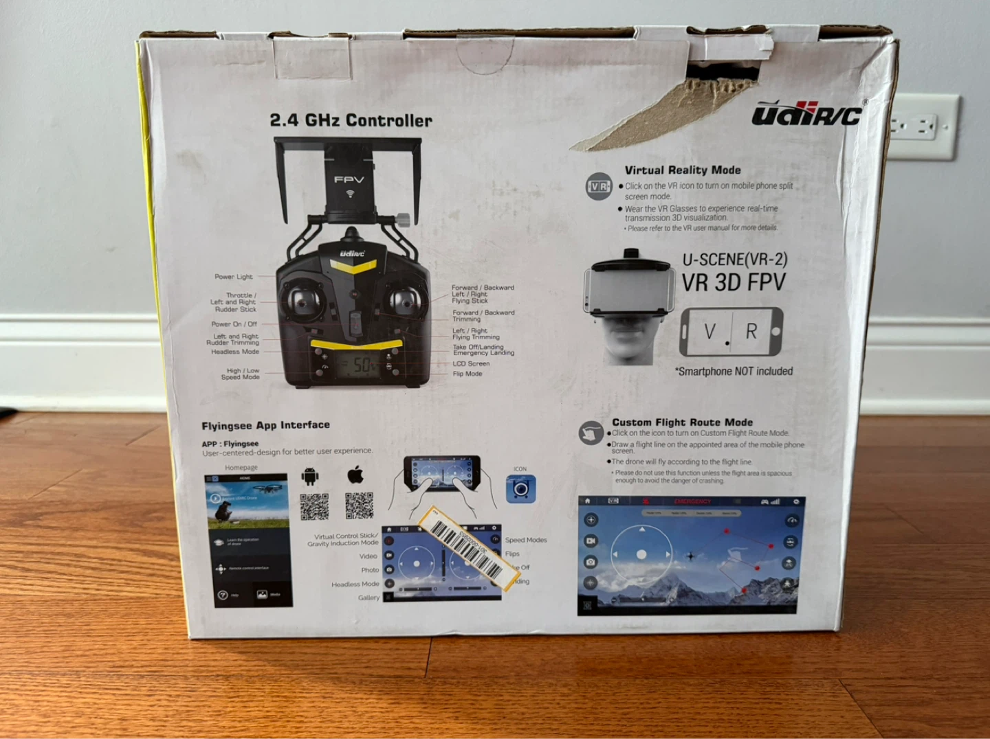 This UdiRC drone offers 2.4GHz remote control with FPV and virtual reality capabilities. It features altitude hold mode and a WiFi camera for live video streaming. The drone can perform 360 flips.
