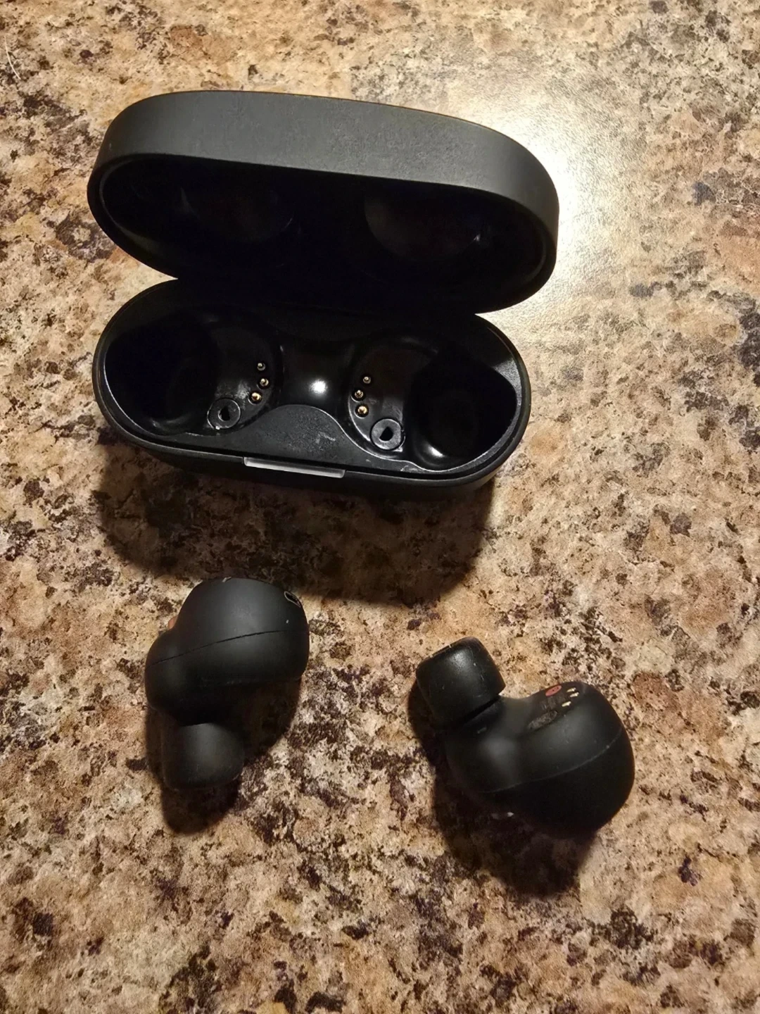 Selling a pair of Sony WF-1000XM4 wireless noise cancelling earbuds in black! They come with their charging case. Great for listening to music on the go
