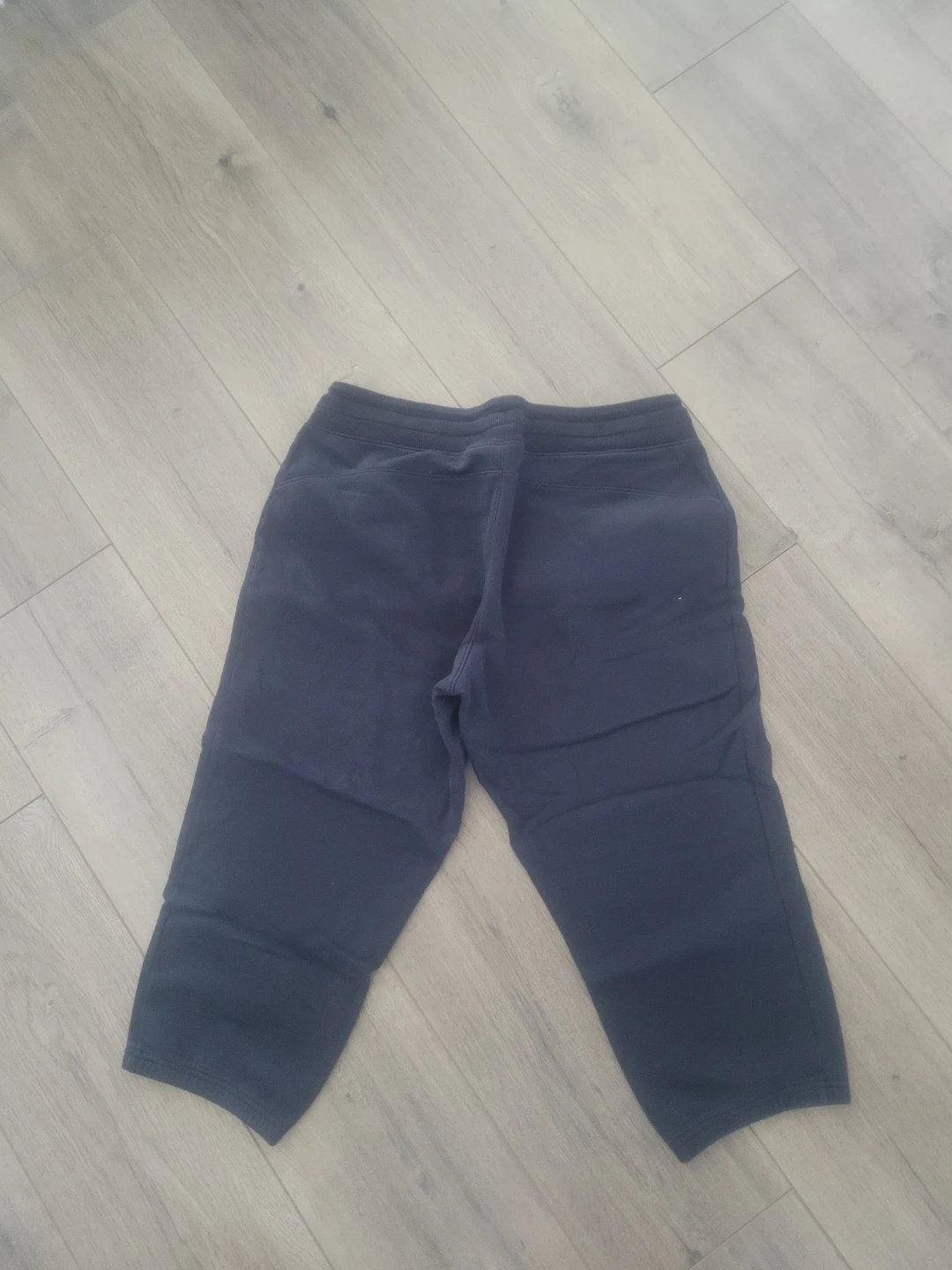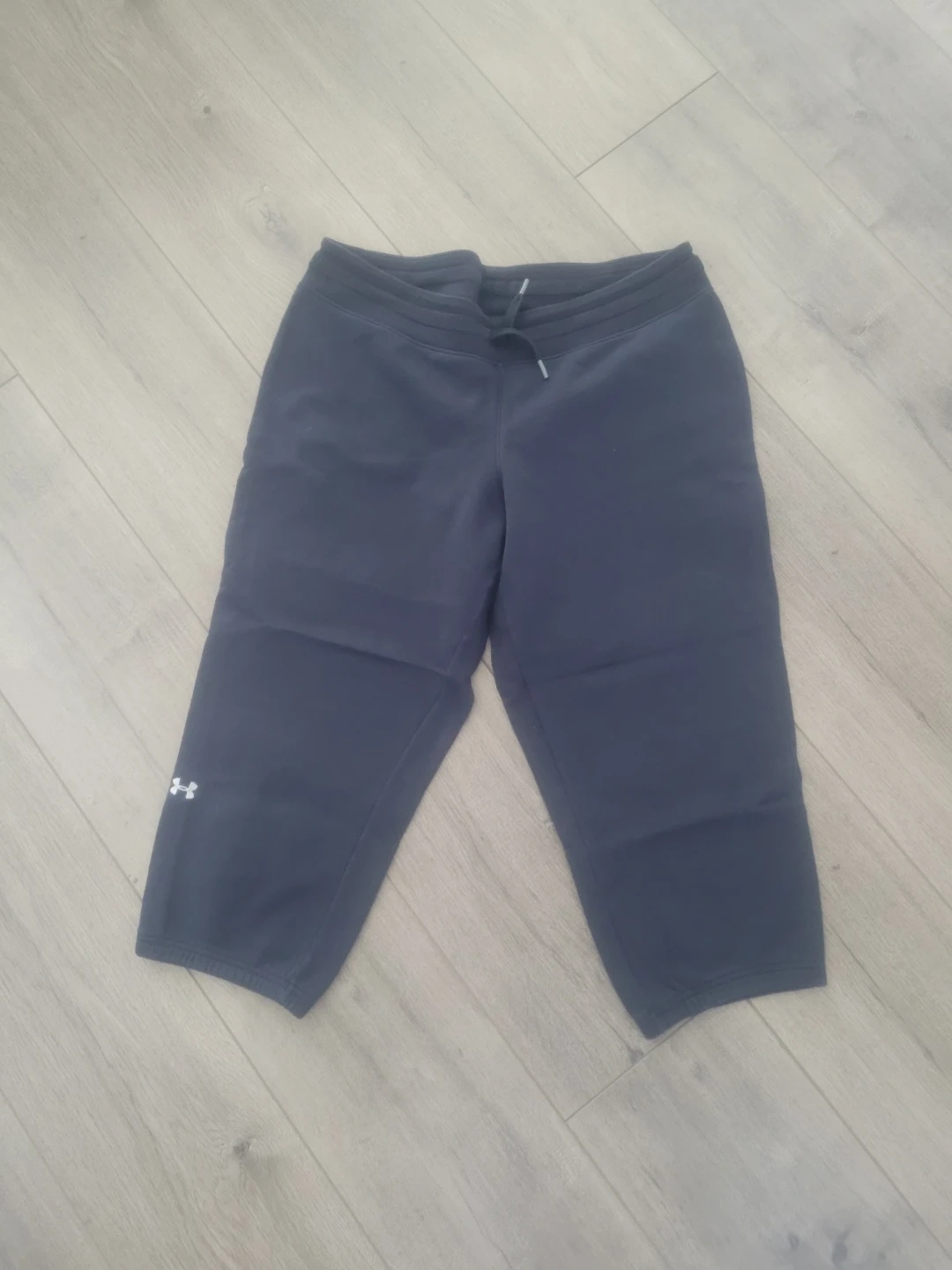 Navy Under Armour capris in size small. These athletic bottoms are made of a soft, comfortable fabric. They feature a drawstring waistband for a secure fit.