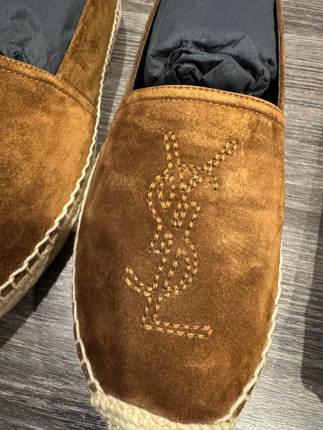 10Saint Laurent espadrilles in a lovely brown suede material. The shoes feature the YSL logo stitched on the front. They come with the original dust bag!