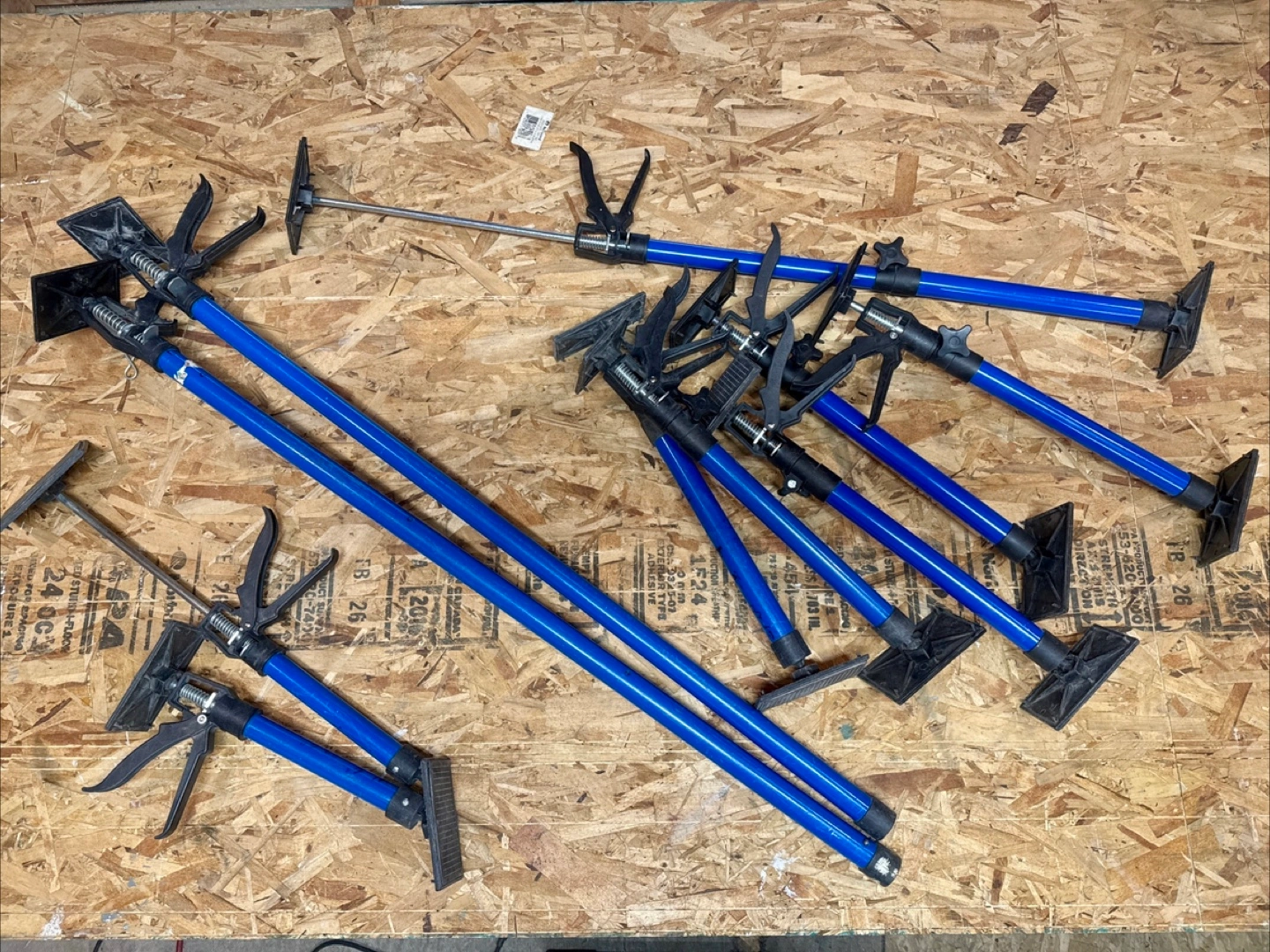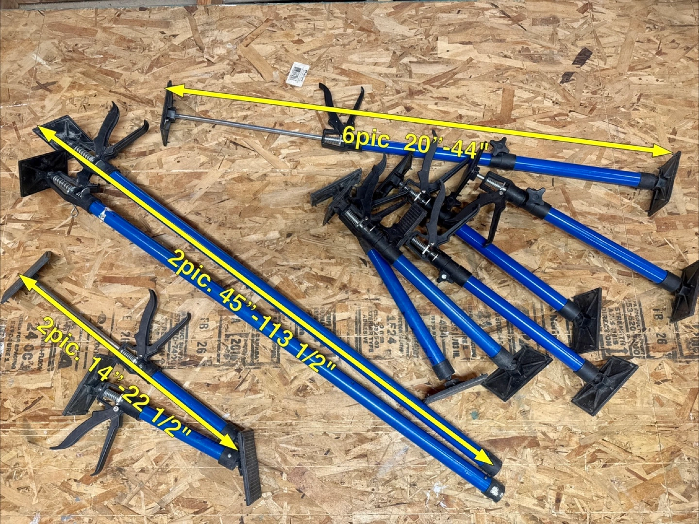 Get your construction or renovation project supported with this set of ten used but functional adjustable support poles. Sizes: Two at 14-22 1/2", six at 20-44", and two at 45 -113 1/2"