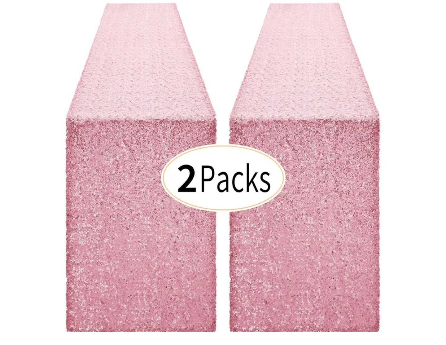 2 Pack Pink Sequin Table Runner 12" x 72"