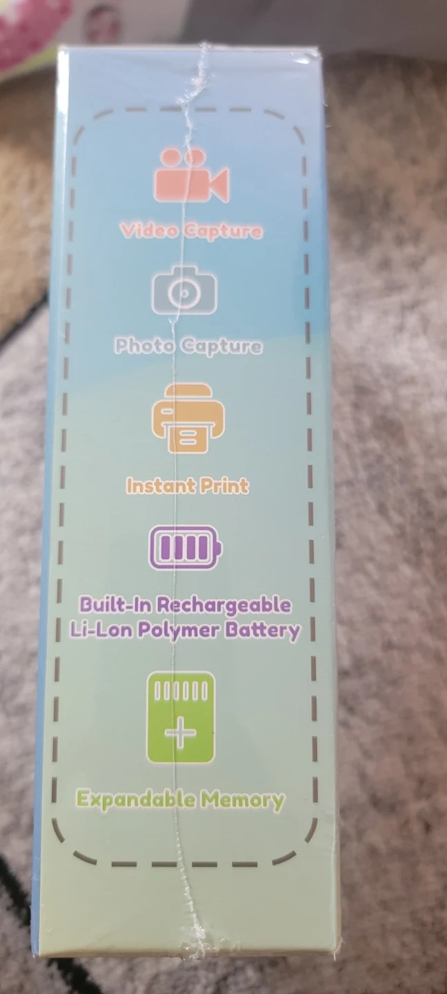 This DIY instant digital camera lets you capture photos and videos. It features instant printing capabilities and a built-in rechargeable Li-Ion Polymer battery. Expandable memory is supported. Perfect for kids who love to create and print their own memories!