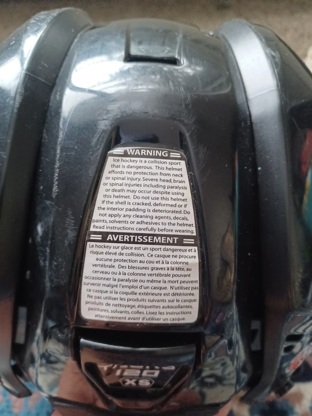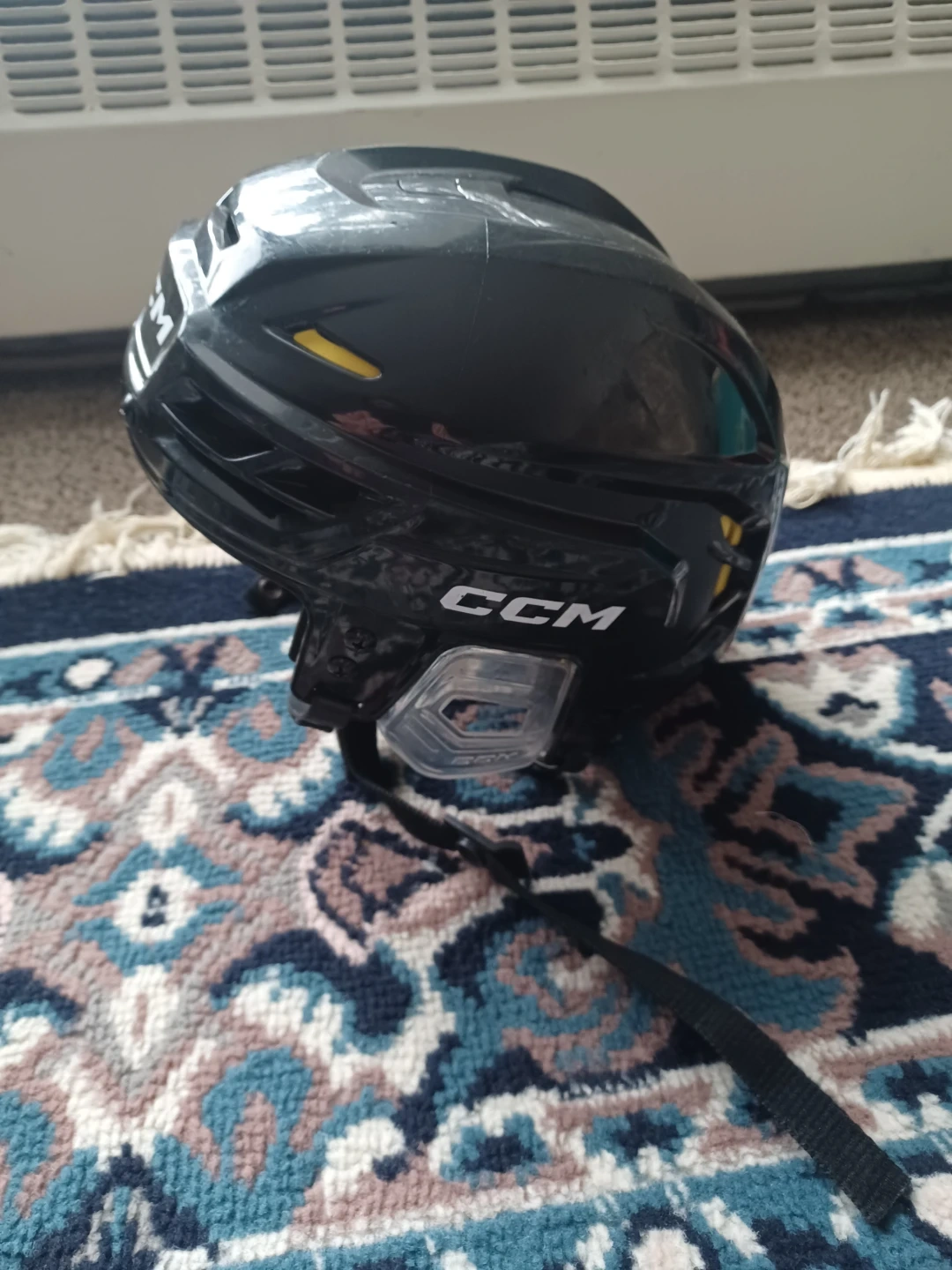 Selling a CCM hockey helmet in size XS. It's black and in good condition. Please note that ice hockey is a collision sport and this helmet is designed to protect from neck or spinal injury. Always read instructions carefully before wearing