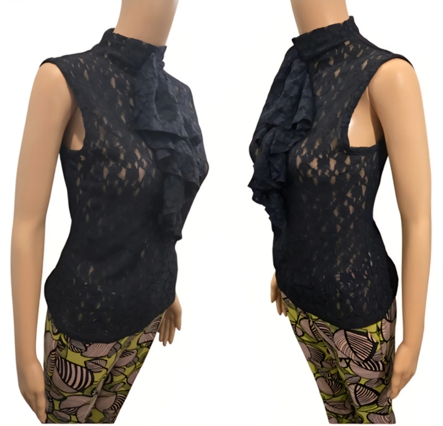 Comrags Ruffle Trim Sheer Lace Top Size XS/S
