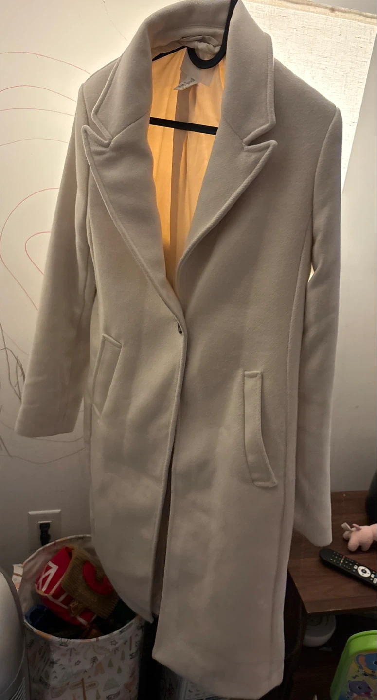 H&M Cream coloured wool blend coat. It's a size EUR S. This coat is perfect for cooler weather!