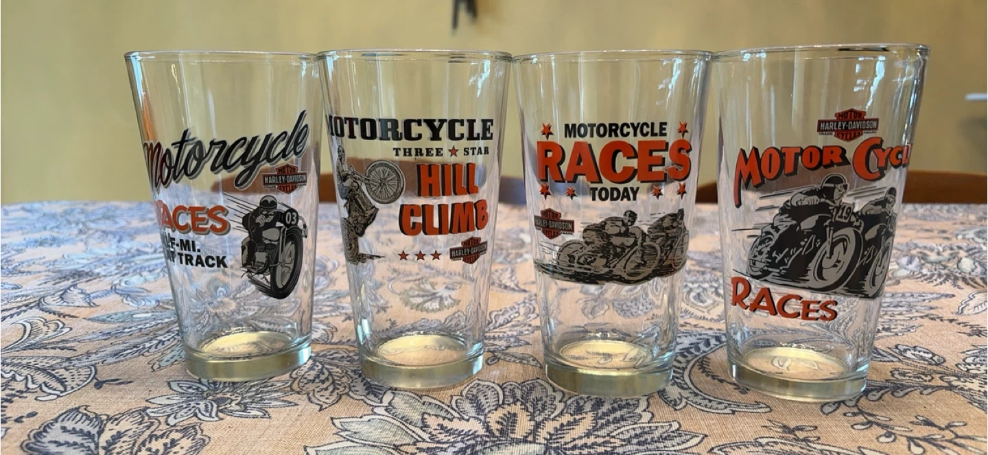 Rare Harley-Davidson Motorcycle Races Glass Set