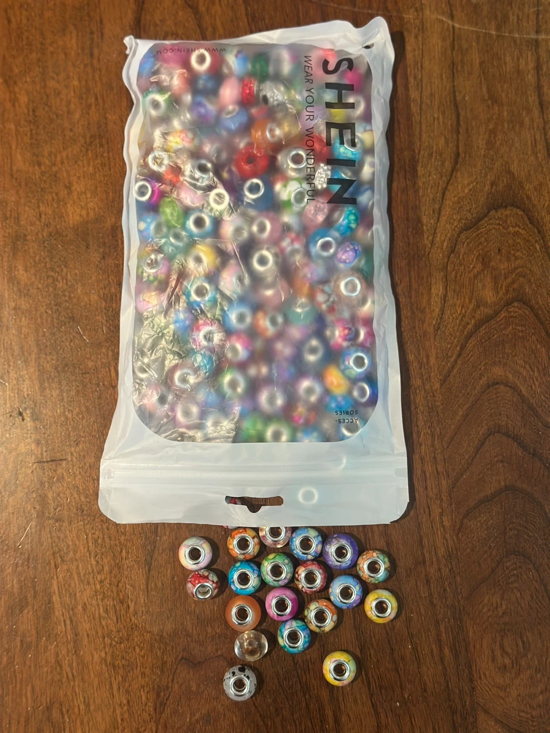 A large bag of assorted colourful charm beads with unique patterns. These beads have a silver-tone core and are ideal for DIY jewellery making.