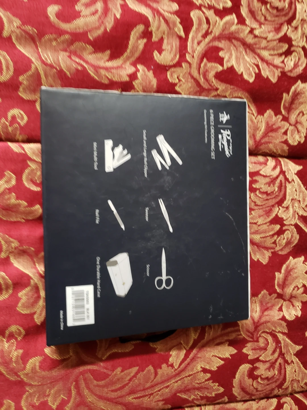 This is a 6 piece grooming It includes a nail file, tweezers, scissors, nail clippers, cuticle pusher, and a portable case. Stainless steel construction.