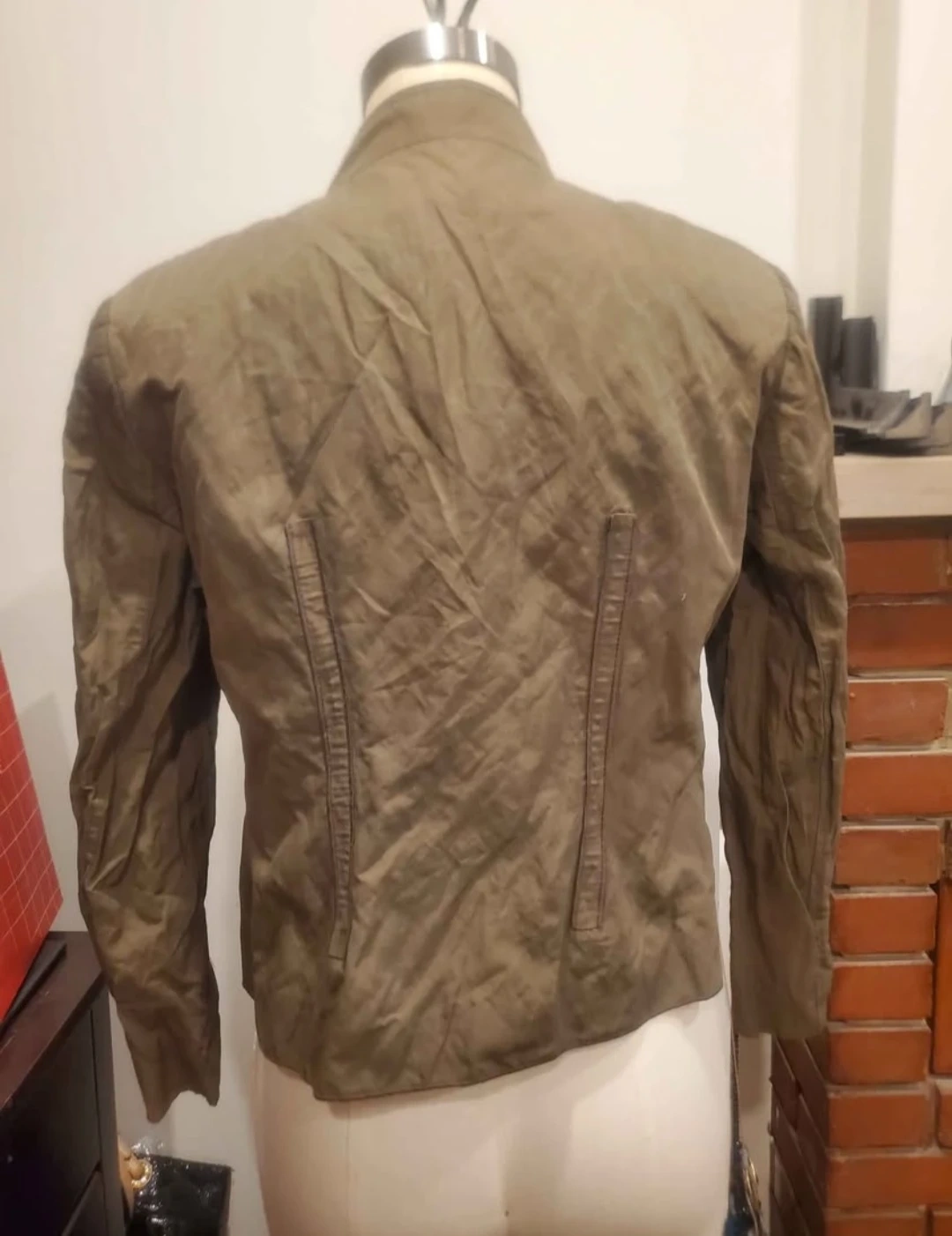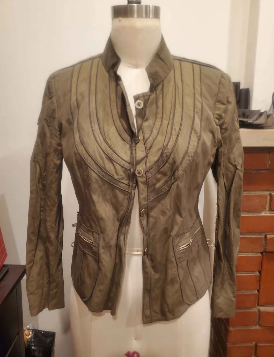 This ONE brand jacket is a stylish khaki colour. It features a button-up front and zippered pockets. Size 10. From a smoke free home meetup location eglinton and dufferin area