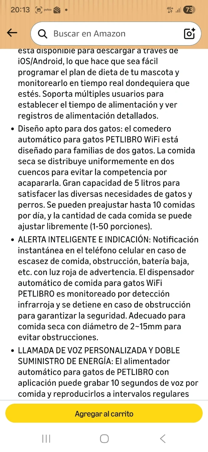 SMART ALERT & INDICATION: Instant notifications are sent to your cell phone in case of food shortage, blockage, low battery, etc., with a red warning light. The PETLIBRO WiFi automatic cat feeder is monitored by infrared detection and stops in case of blockage to ensure safety. Suitable for dry food with a diameter of 2-15mm to prevent clogging.