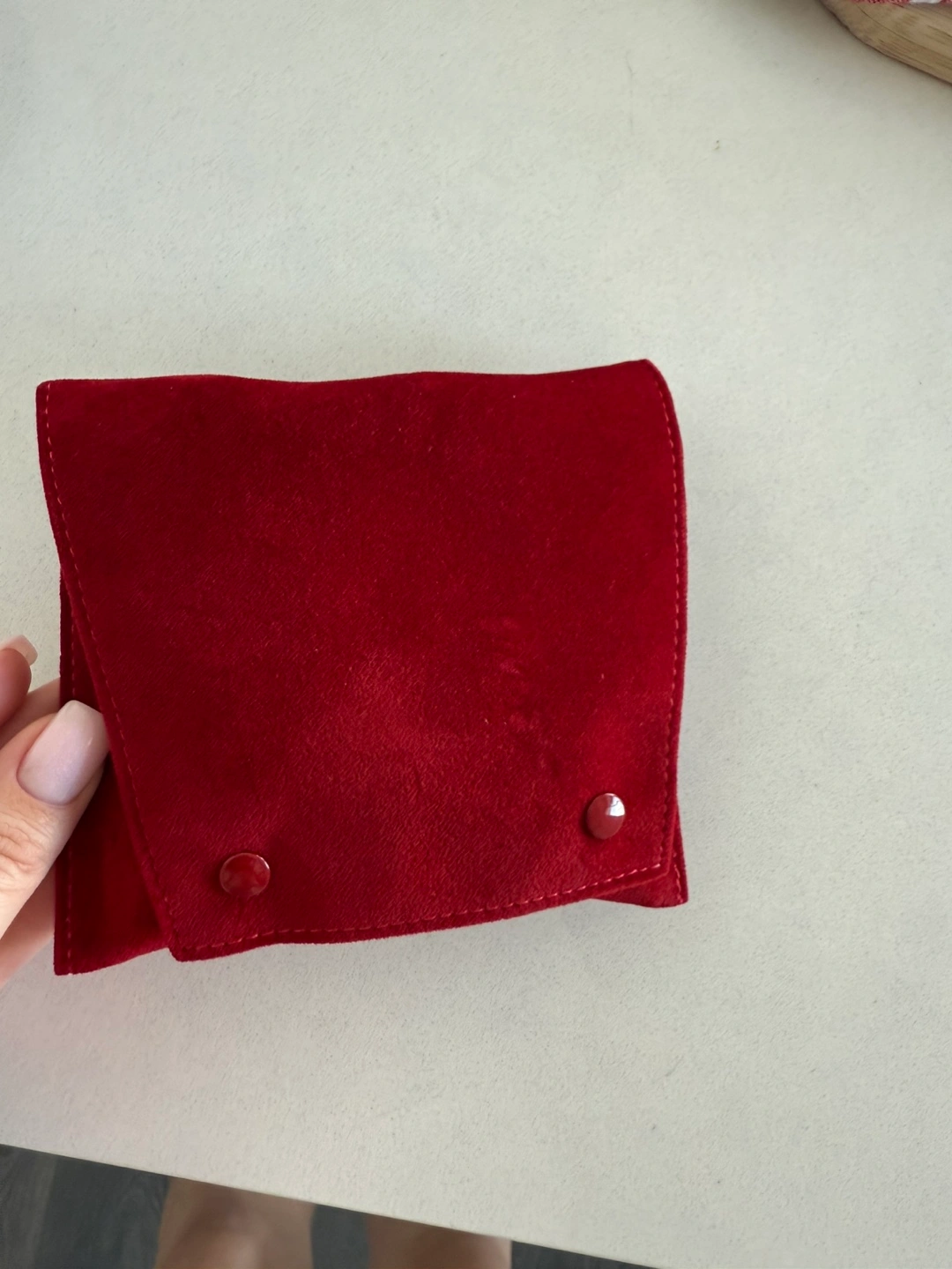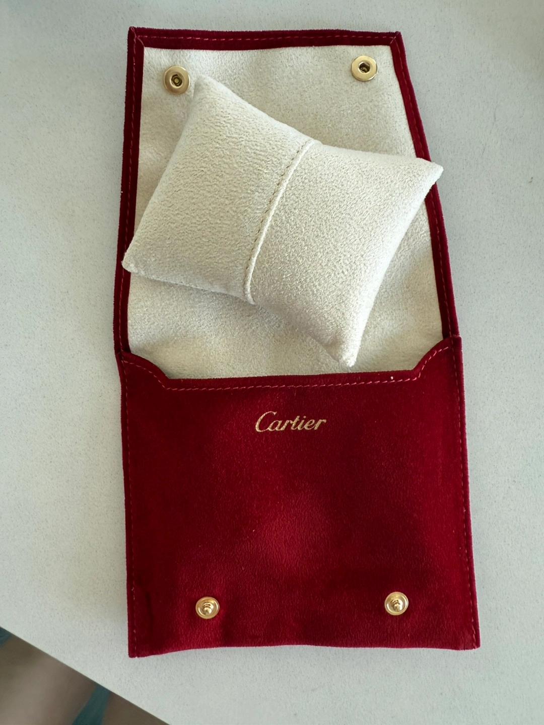 Selling a Cartier jewellery pouch in red suede. It's in great condition and perfect for storing your precious items. The pouch includes a small, soft pillow insert to keep your jewellery safe and secure