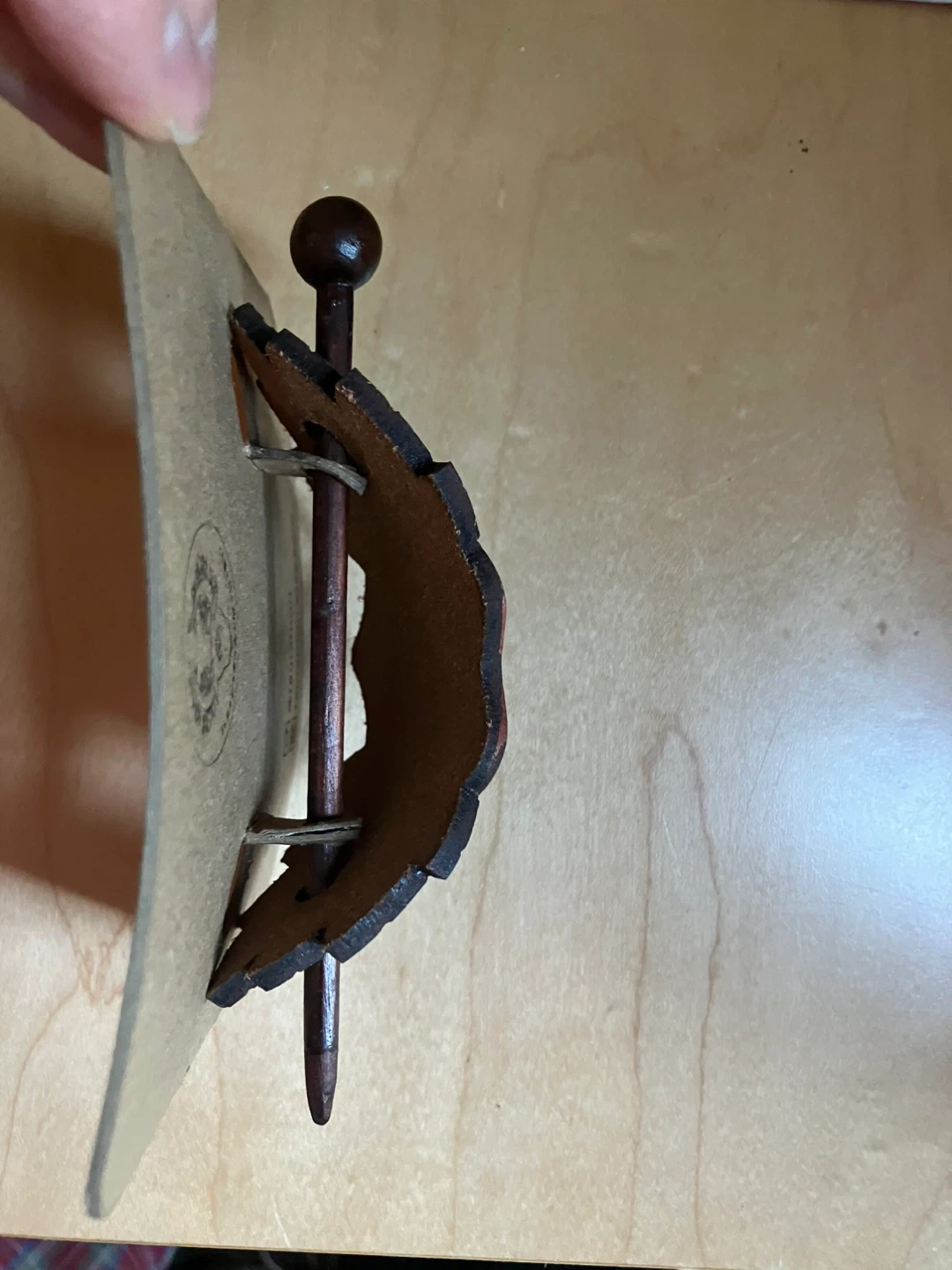 I have a cute hair pin from Tauramori for sale! It's brand new and ready for a new owner. The design features a Chinese lantern plant inspired image, and it's a unique accessory to add to your collection. Made of vegetable tanned leather and wood