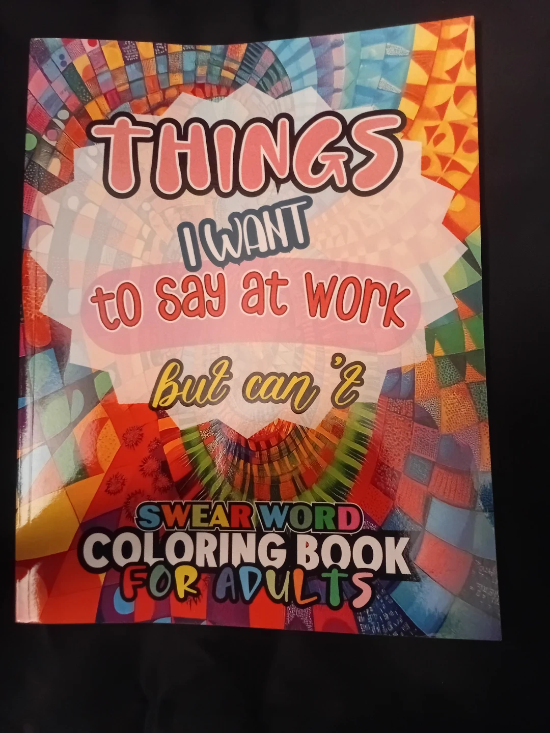 This is a paperback "Swear Word Coloring Book for Adults". It features designs with humorous and sarcastic quotes. It's great for stress relief!