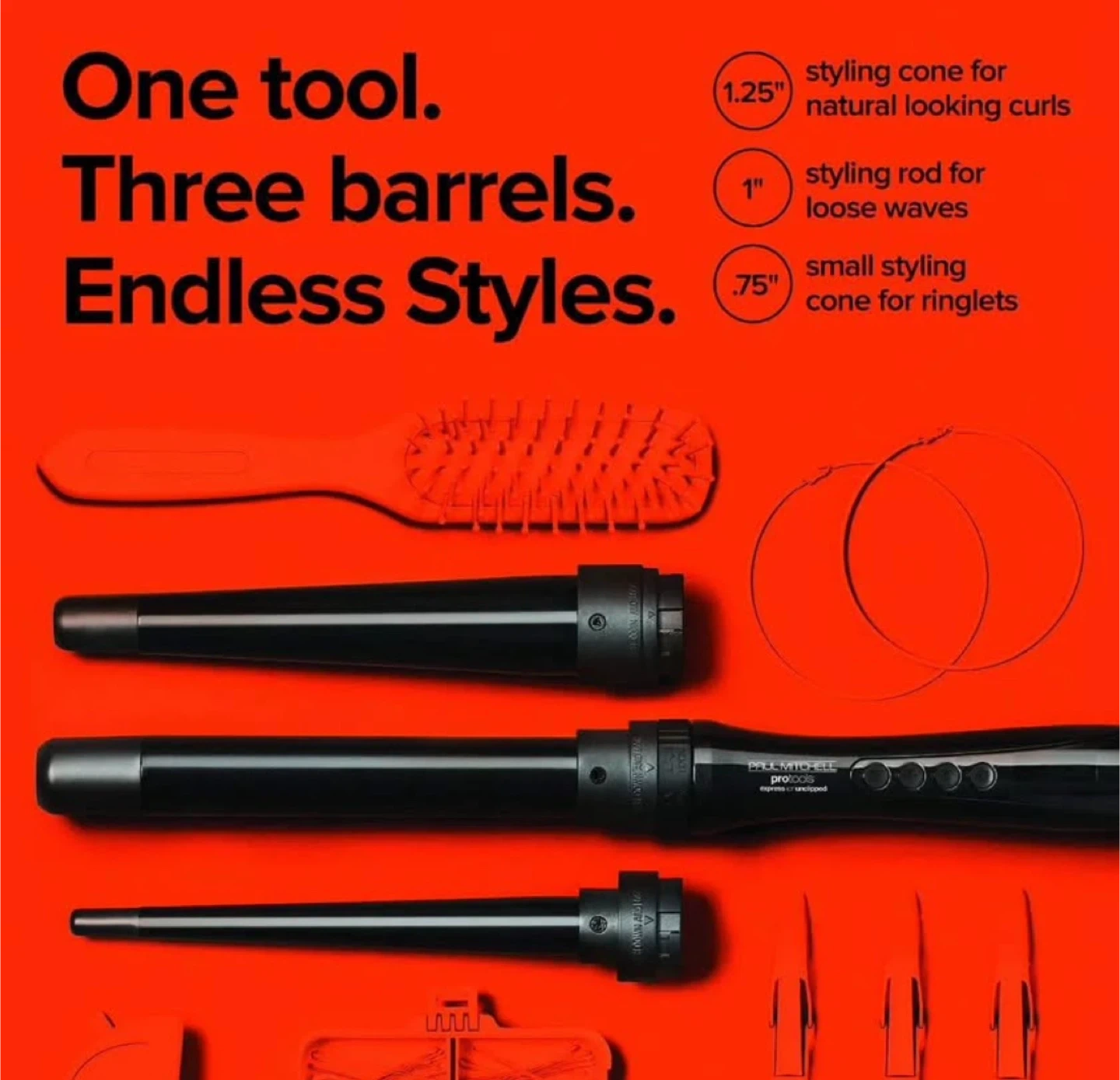 Selling a brand new Paul Mitchell Unclipped 3-in-1 curling iron! It comes with three interchangeable ceramic barrels for loose waves, natural-looking curls, and ringlets. The set includes a styling cone for natural looking curls (1.25"), a styling rod for loose waves (1"), and a small styling cone for ringlets (.75"). Get endless styles with just one tool! The box is included too