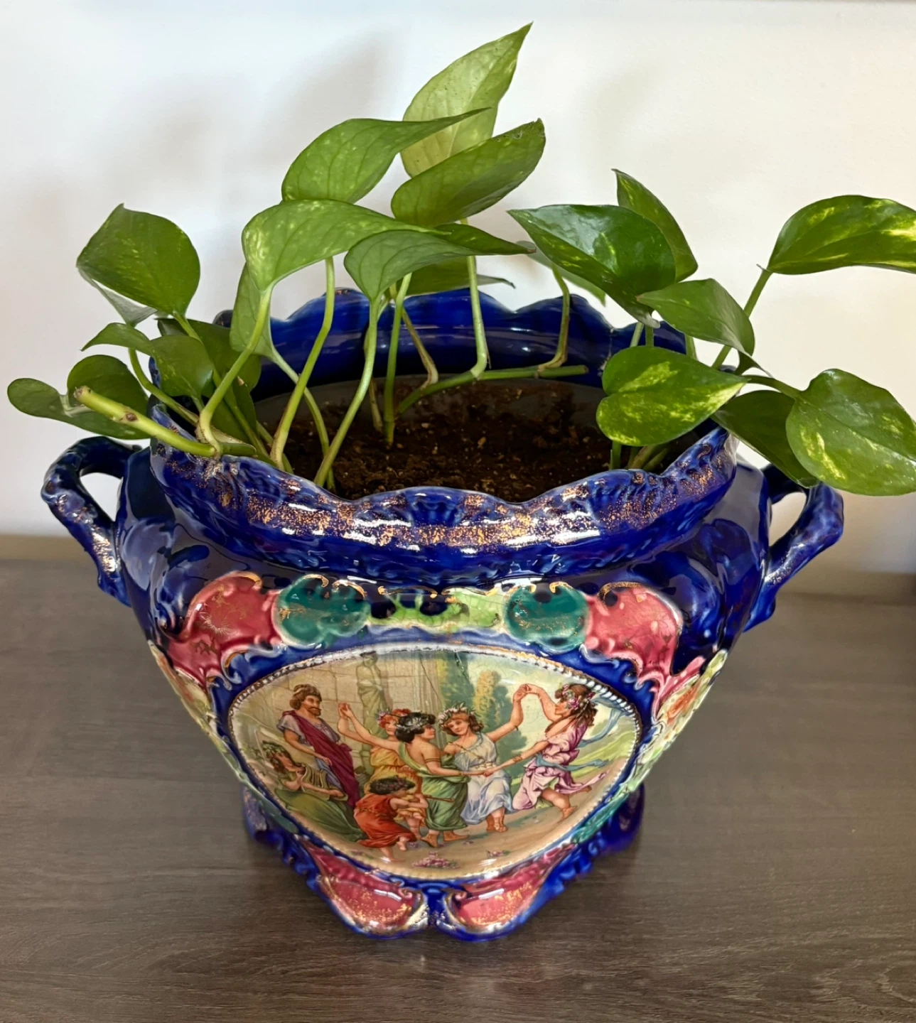 Looking for a new home for this beautiful cobalt blue jardinière planter. It has such rich color and timeless charm — a true statement piece for any home or garden.