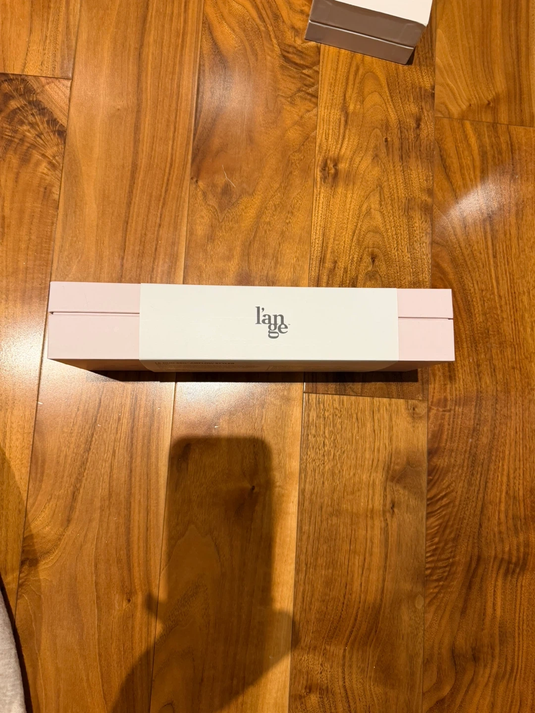 This is the Lange Le Duo 360° Airflow Styler in Blush. It's a hair styling tool designed for efficient drying and styling. The styler comes with a dust bag and heat-resistant mat.