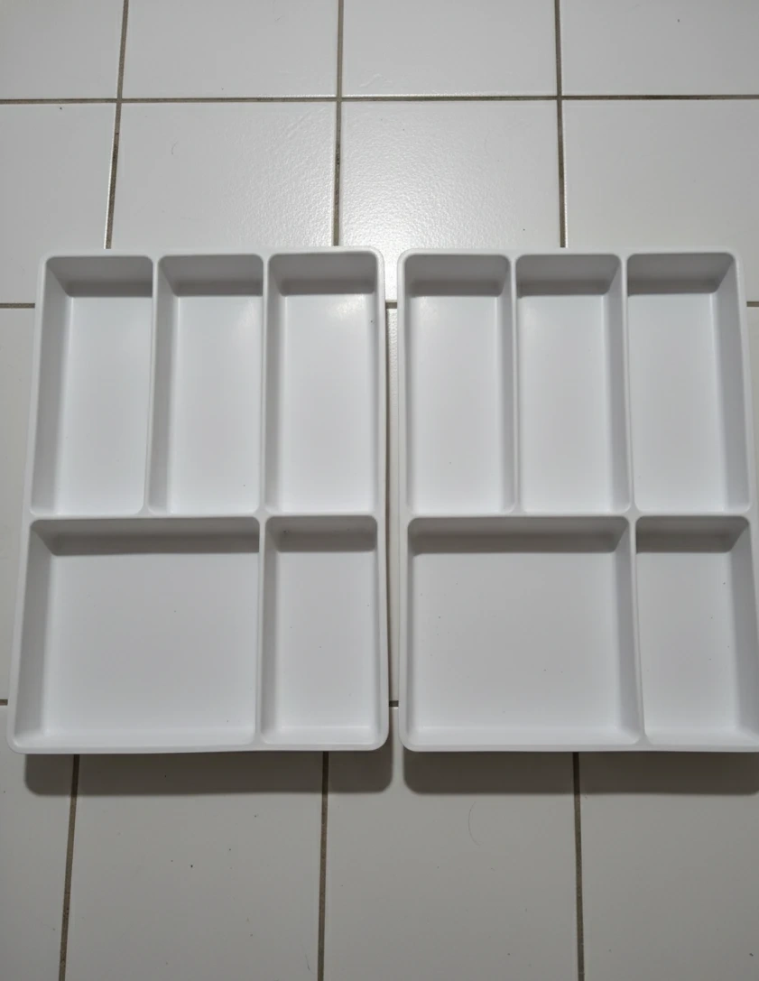 Selling a couple of white drawer organizers! They're perfect for keeping your drawers tidy and organized. Great for cutlery, office supplies, or anything else you need to keep in order