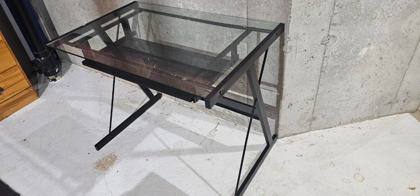 Glass top desk with pull-out keyboard tray