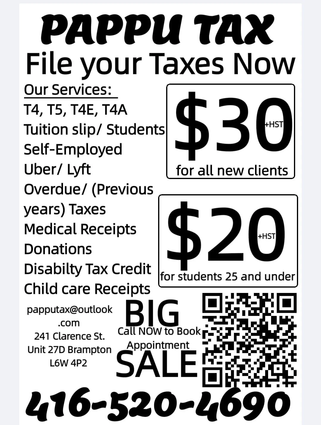 Hello Pappu Tax this is the best sale for all my new clients $30+ HST.