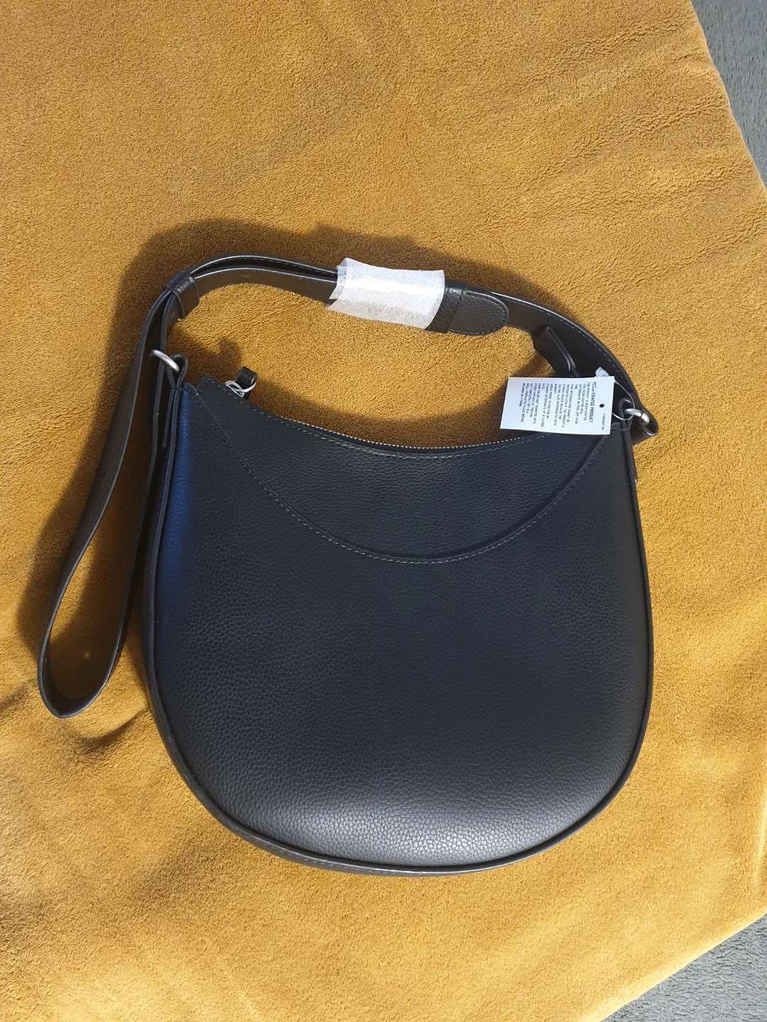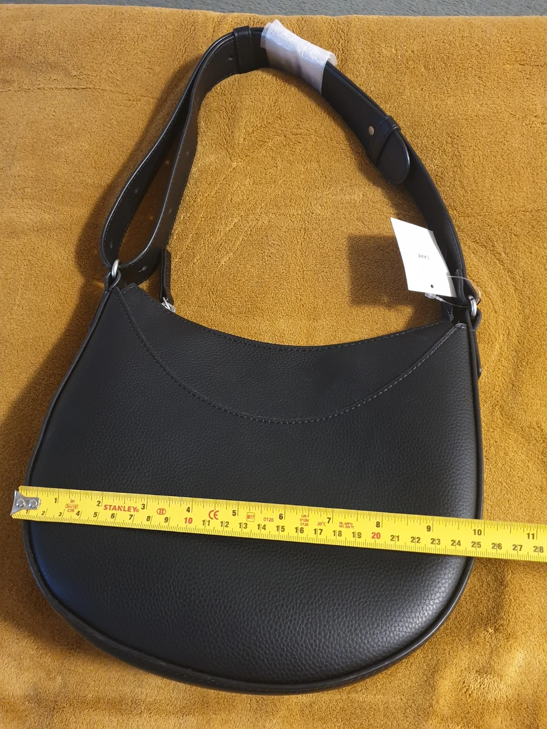 Slim, lightweight black shoulder bag. Extendable straps, with two inside pockets. Zips really smoothly. This was a present but never used it.