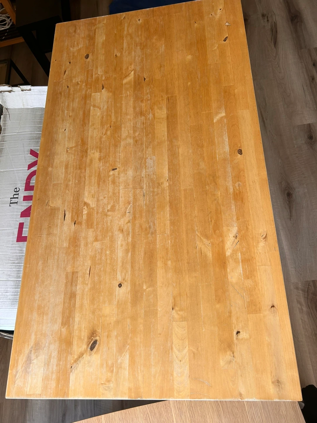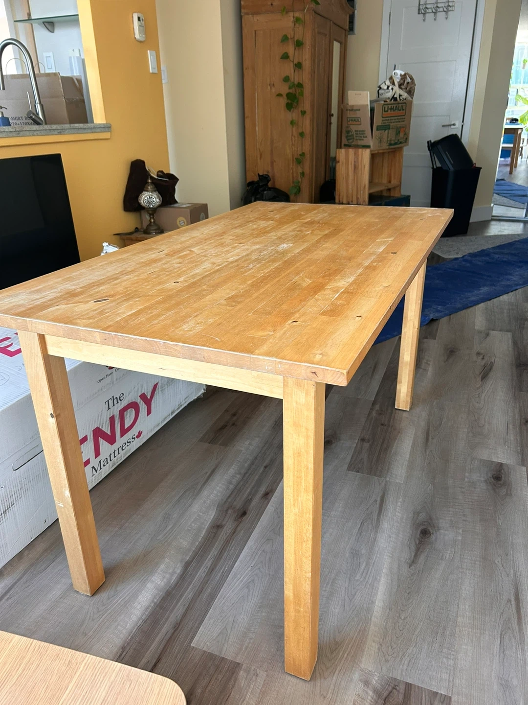 Light wood dining table, good condition - could be used for dining or workshop/storage spaces.