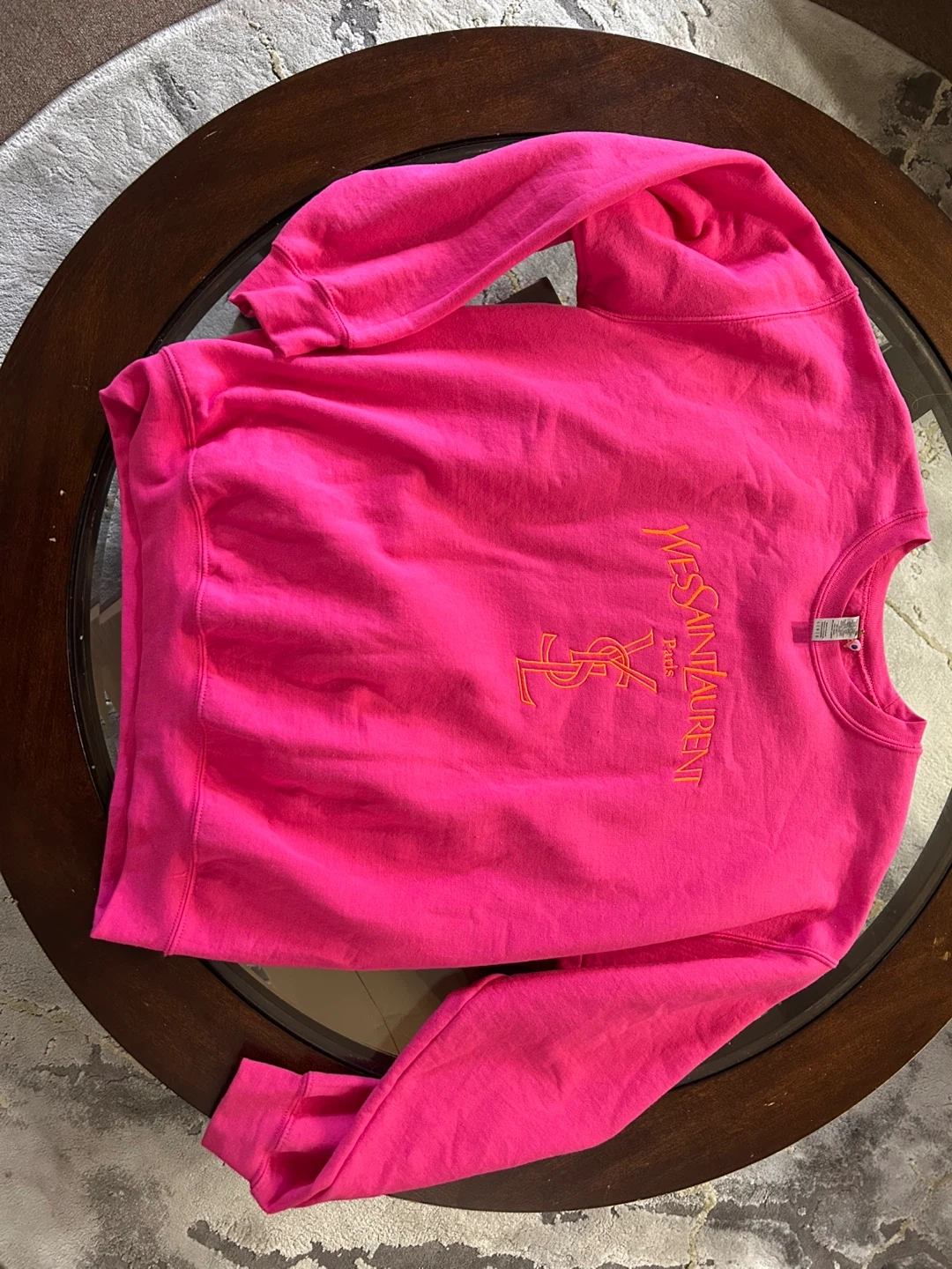 10A bright pink Yves Saint Laurent sweatshirt! The logo is embroidered in a matching pink/orange colour. It's in great condition and ready for a new home