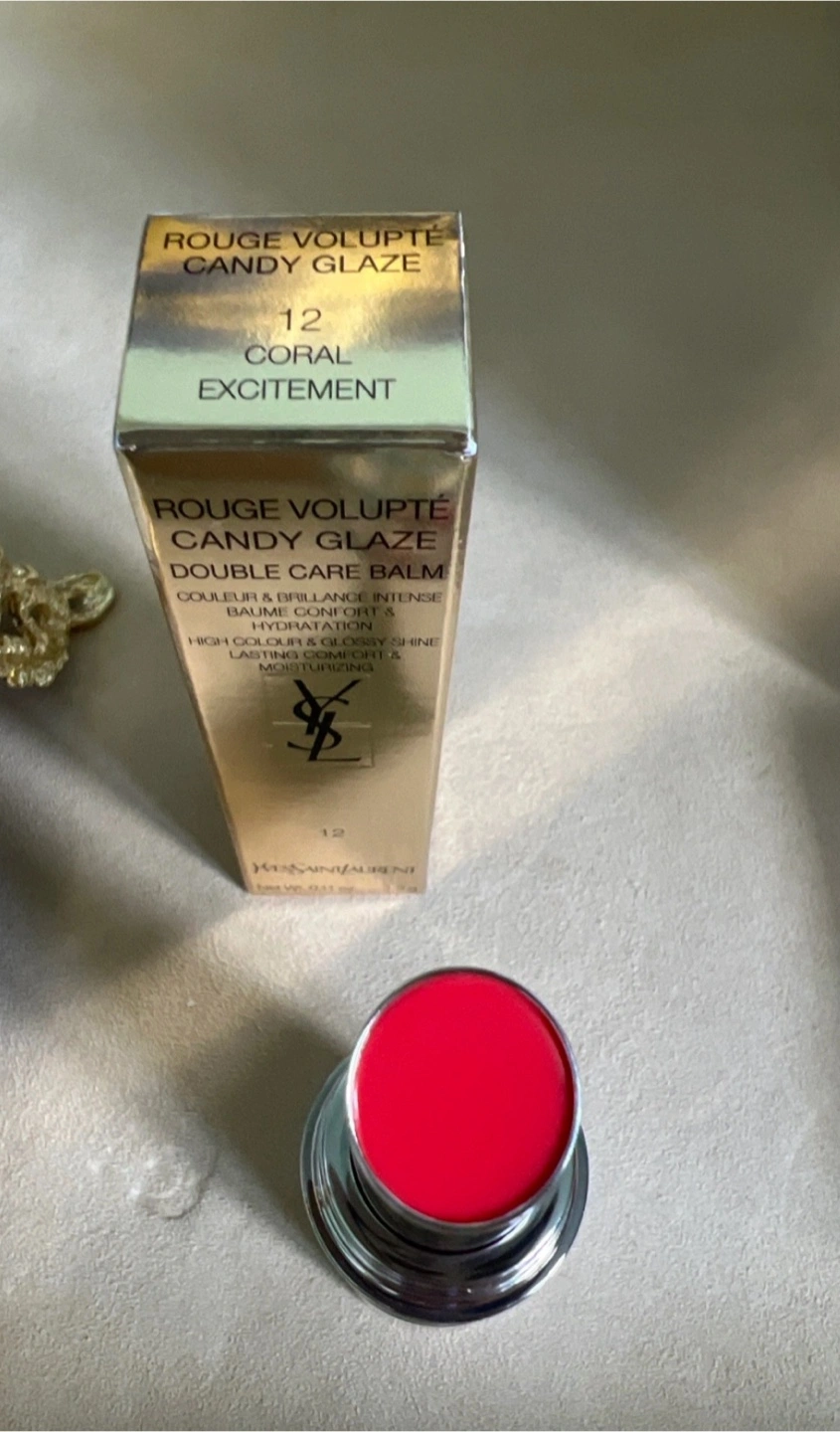 Selling a YSL Rouge Volupté Candy Glaze Double Care Balm in Coral Excitement (12) and a YSL Beaute pouch in burgundy velvet. The balm provides high colour and glossy shine with lasting comfort and moisturizing benefits. It's a great addition to your makeup collection! $15 for cosmetic bag; $50 for lipstick. If you purchase it together, it’s $55 cash.